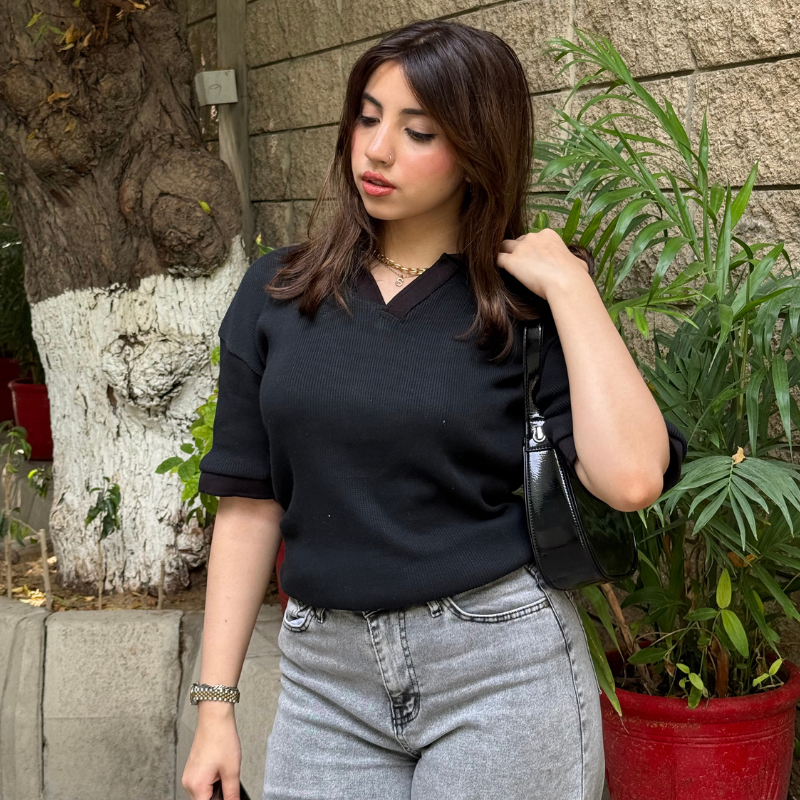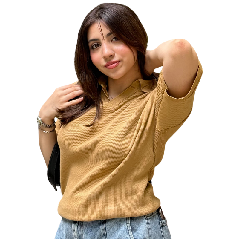 With our Knitted V-Neck Polo Shirt, designed for style, comfort, and breathability.